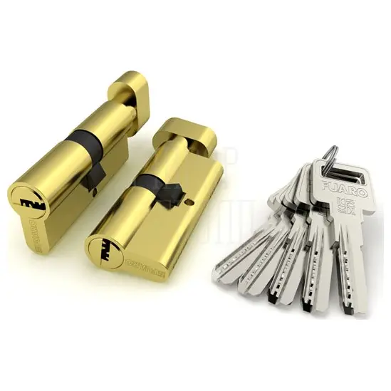 Цилиндровый механизм Fuaro R602 предназначен для установки в корпуса врезных цилиндровых замков для всех типов дверей. Вариант исполнения: ключ-вертушка. Тип ключа: \"перфорированный\". Материал изготовления цилиндра: латунь. Количество пинов: 6. Секретность более 45 000 комбинаций. Работоспособность более 250 000 циклов. Размер: 80 мм. Цвет: латунь. Комплектация: 5 латунных ключей, крепежный винт 70 мм. Упаковка: блистер. Гарантия: 5 лет.