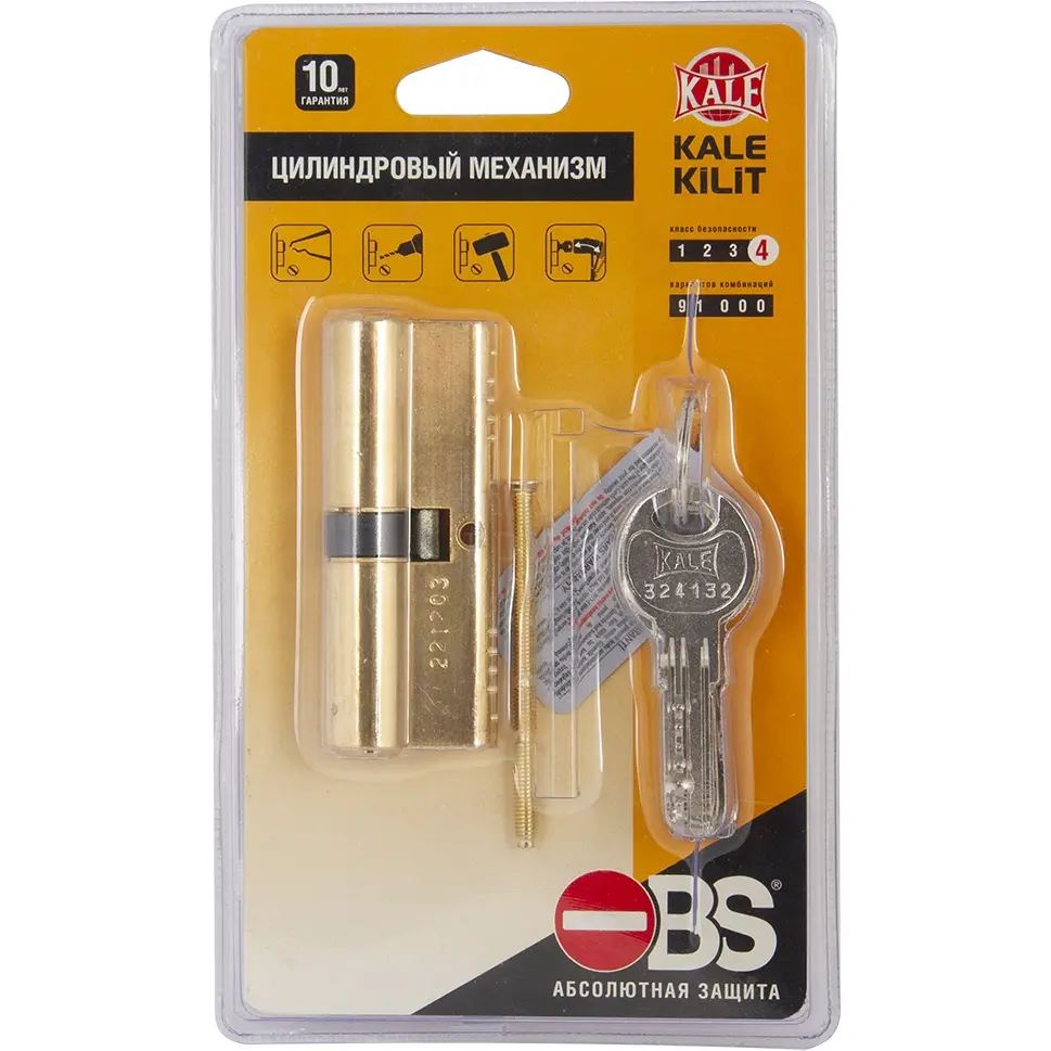 Цилиндровый механизм серии 164 OBS SNE имеет 4 класс безопасности. Применение в цилиндрах уникальной системы автоматической блокировки позволяет противостоять взлому максимальное время. 6 латунных комбинативных пинов обеспечивают 91 000 комбинаций. Комплексная система защиты от высверливания, подбора и вскрытия бампингом. Секретные пины грибовидной формы позволяют противостоять открытию методом подбора секретного кода. Защитные стержни выполнены из высокопрочной стали, защищающей механизм от разрушения методом высверливания. Блокировочные пины OBS S блокируют ротор цилиндрового механизма при попытке открыть его инородным предметом, отмычкой или методом \"бампинга\". Тип ключа: перфорированный. Исполнение: ключ-ключ. Комплектация: 5 латунных ключей, крепежная фурнитура. Размер:90 (40+10+40) мм. Цвет: латунь.