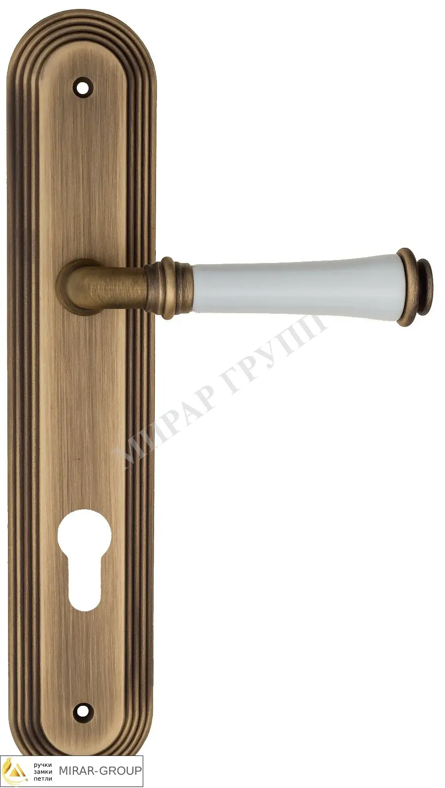 Дверная ручка Fratelli Cattini "GRACIA CERAMICA BIANCO" на планке PL288 матовая бронза (cyl)