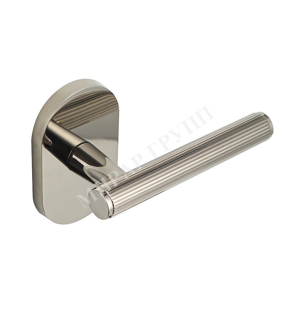 Дверная ручка из латуни в 3-х тренд оттенках Ghobestir "RACHEL" G002 на овальной розетке никель pvd