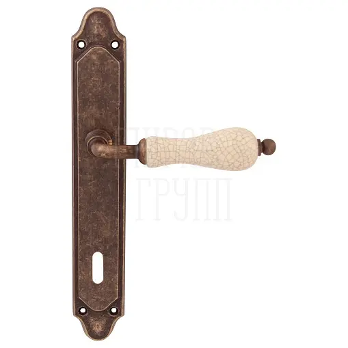 Дверная ручка на планке Melodia 179/158 "Ceramic" античная бронза (key)