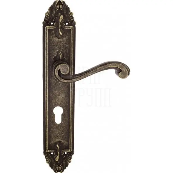 Дверная ручка Venezia "VIVALDI" на планке PL90 античная бронза (cyl)
