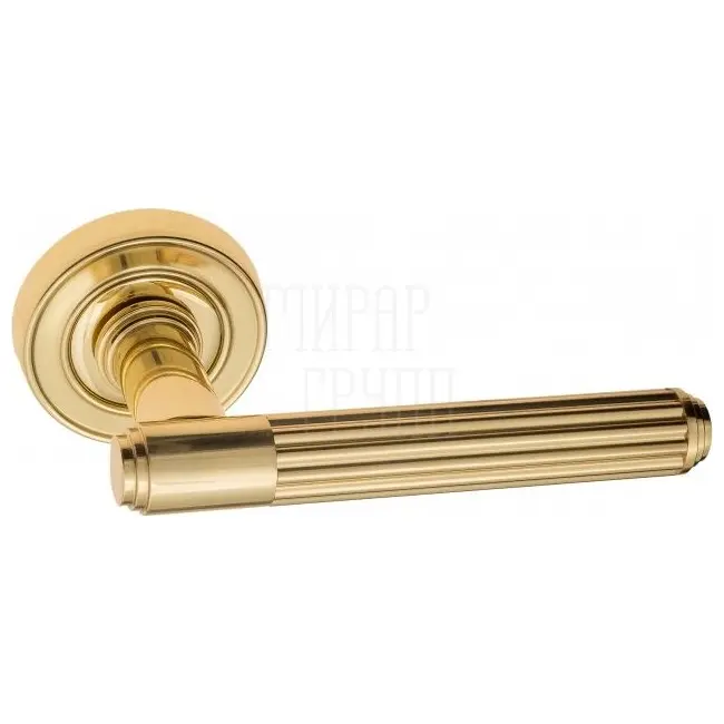 Дверная ручка на круглой розетке "EXA TUBE" D6 полированная латунь