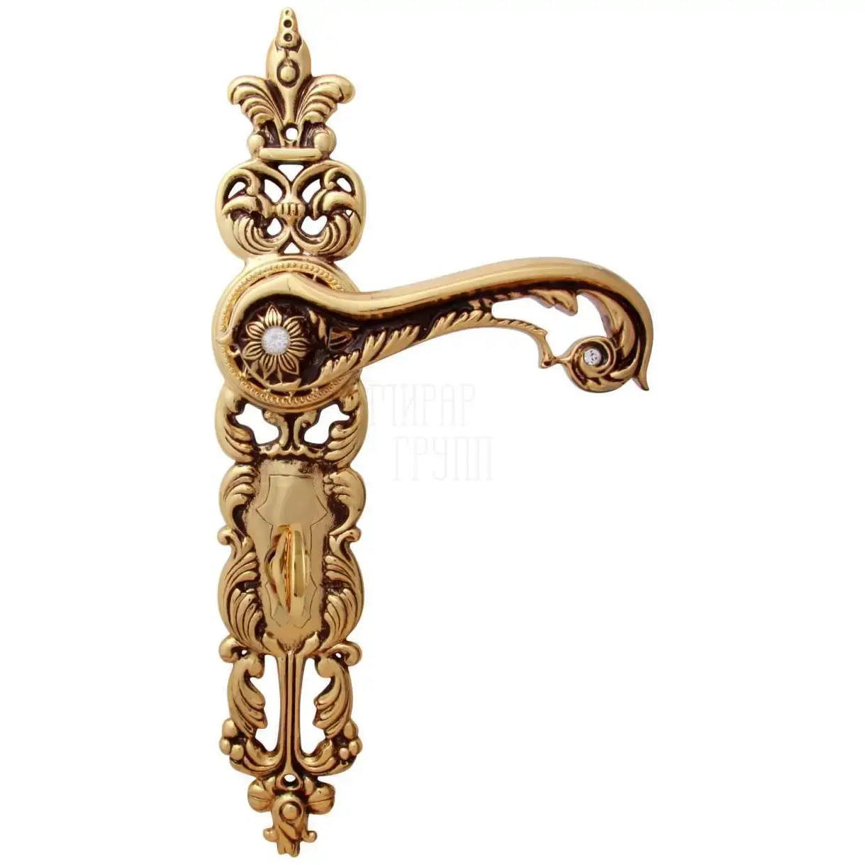 Дверная ручка на планке Class "Jade" 1110 Svarovski золото 24К + коричневый