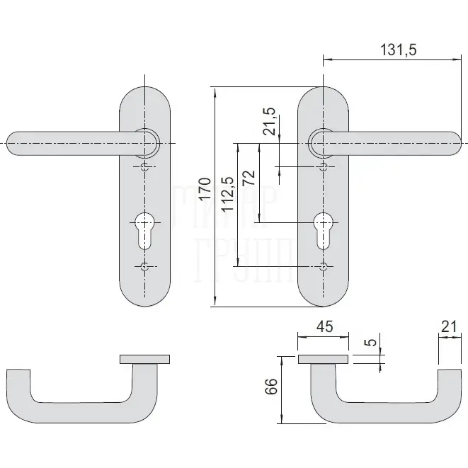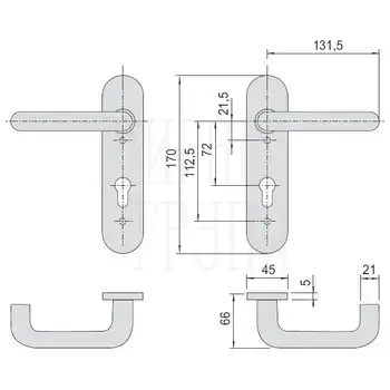Комплект ручек на планке с отверстием под цилиндр CISA 07070.26.0 никель
