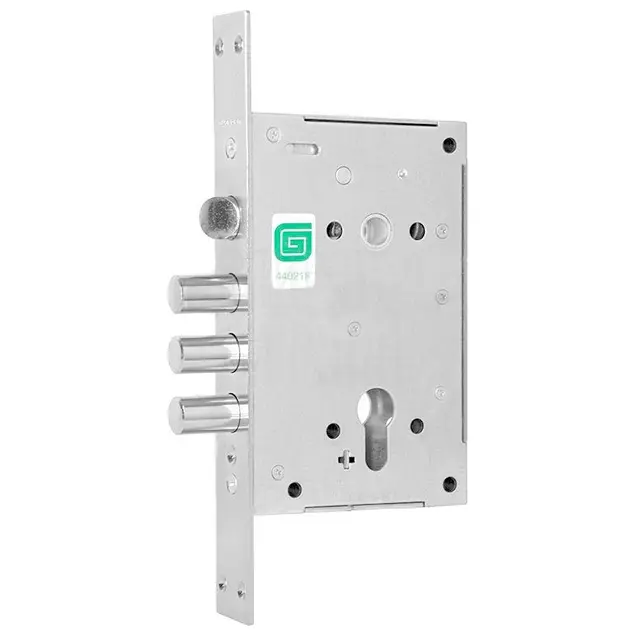 Корпус врезного замка с защёлкой ЗВ 22.11 Т подходит для установки в металлические двери, шкафы и сейфы. Универсальный, подходит для дверей правого и левого открывания. Закрывается/открывается на полных 3 оборота. Усиленная конструкция засова защищает от взлома. Функция отключения защелки от ручки в закрытом положении замка: в закрытом положении защелка остается в фиксированном положении даже при нажатии на ручку. Есть отверстия для крепления ручки стяжными винтами. Цилиндр приобретается отдельно.
