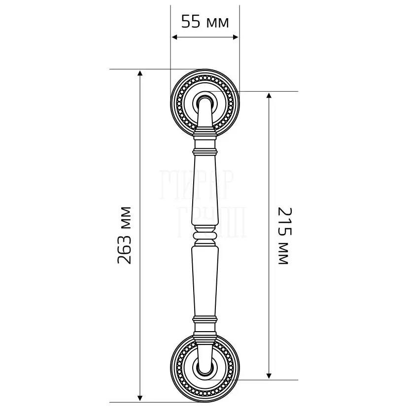 Ручка дверная скоба Extreza "Petra" (Петра) 250 мм (205 мм) на круглых розетках R03 матовая латунь