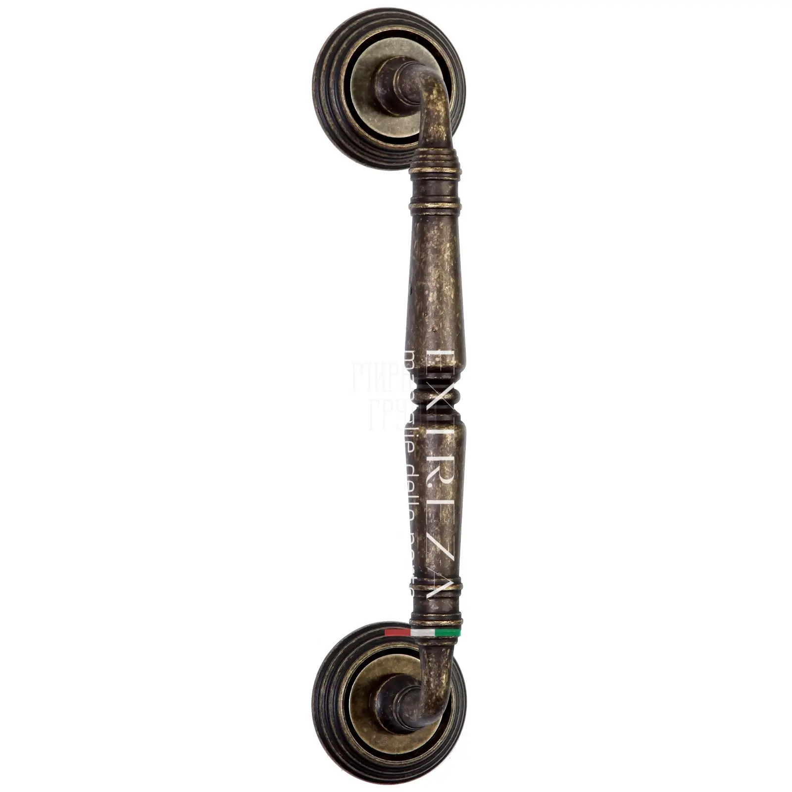 Ручка дверная скоба Extreza "Petra" (Петра) 250 мм (205 мм) на круглых розетках R05 античная бронза