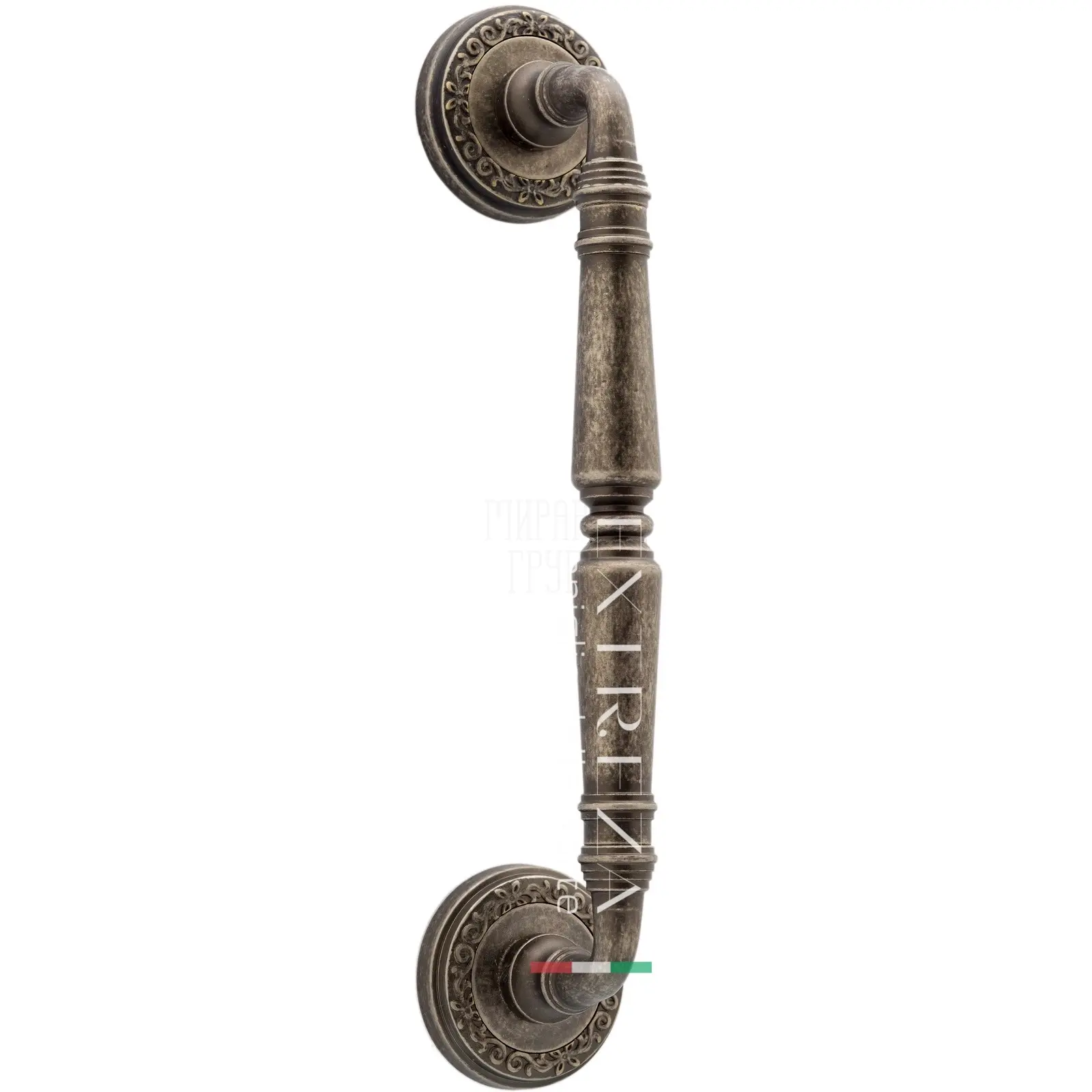 Ручка дверная скоба Extreza "Petra" (Петра) 250 мм (205 мм) на круглых розетках R06 античное серебро