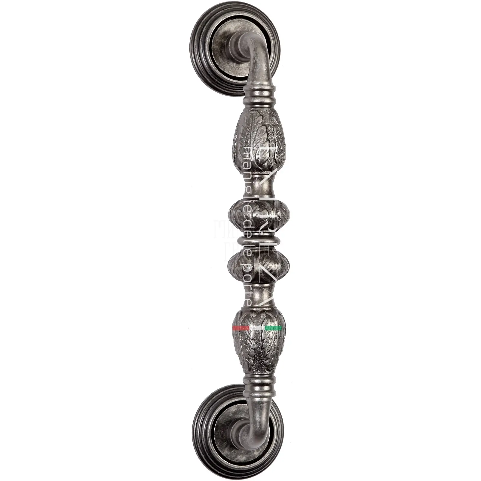 Ручка дверная скоба Extreza "Tesla" (Тесла) 300 мм (250 мм) на круглых розетках R05 античное серебро