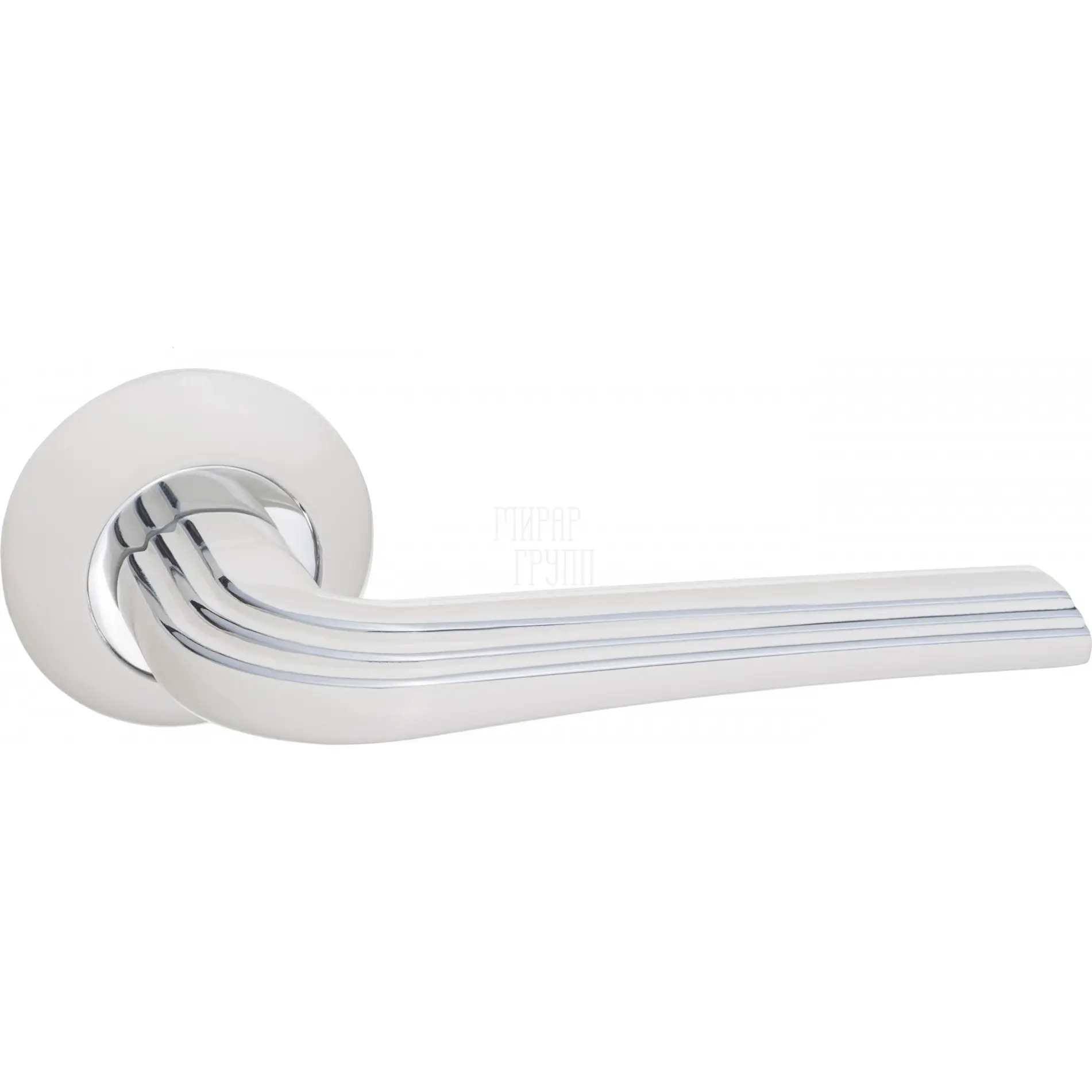 Дверные ручки Renz (Ренц) "Терамо" INDH 429-08 на круглой розетке матовый супер белый + полированный хром