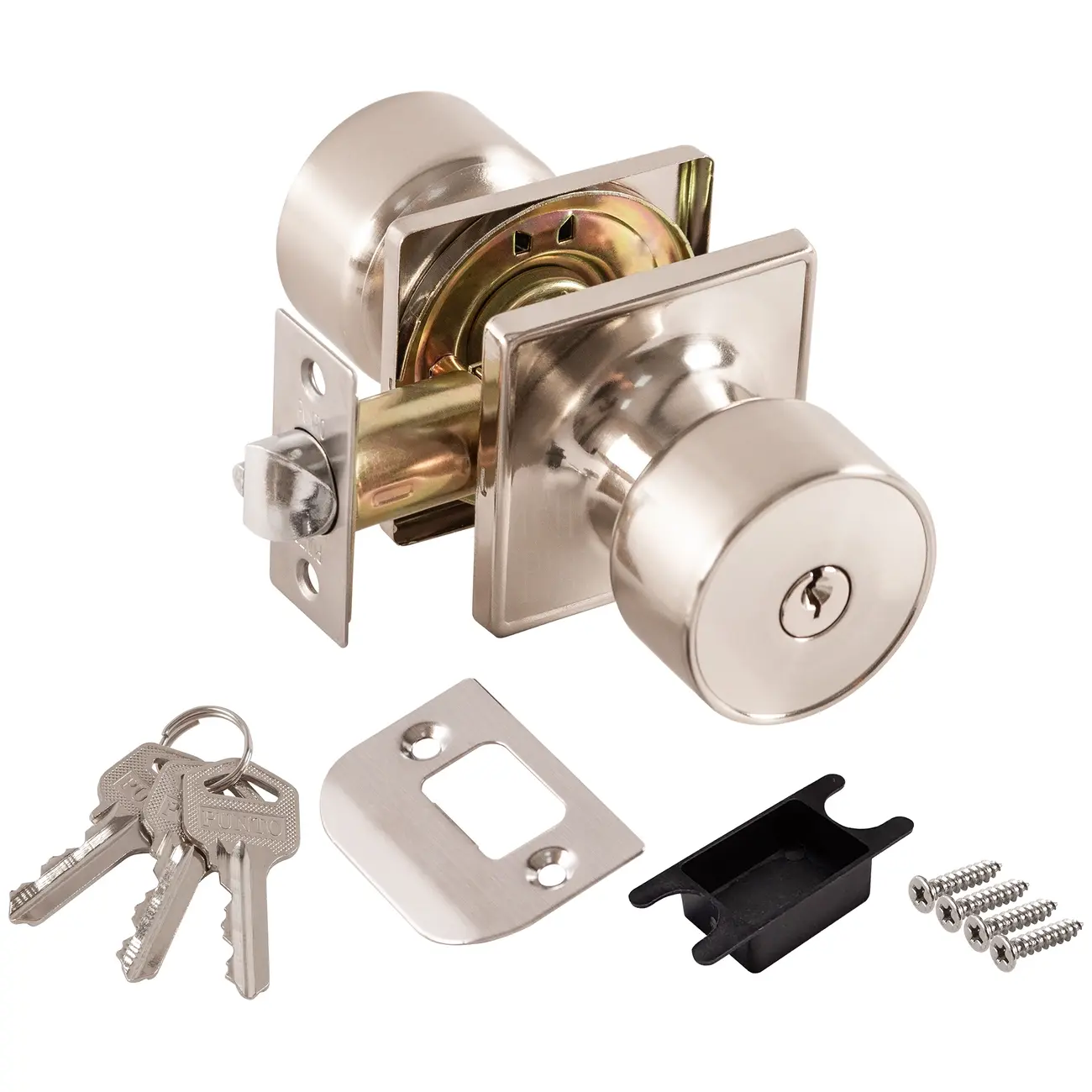 Комплект дверных ручек с защелкой (KNOB) Punto серии 772/BL CP-ET предназначен для установки в межкомнатные двери толщиной 35-45 мм. Толщина основания - 7 мм. Подходит для дверей правого и левого открывания. Гальваническое покрытие прошло тест на устойчивость к коррозии в соляном тумане и соответствует 1 классу ГОСТ. Ресурс работы ручек-защелок более 150 000 циклов открывания/закрывания, что гарантирует безотказную работу двери более чем на 15 лет. Бэксет защелки регулируется - 60/70 мм. Материал изготовления: сталь. Модификация: ключ/фиксатор. Цвет: хром. Комплектация: защелка, ответная планка с декоративной заглушкой, дверные ручки, крепежная фурнитура и инструкция по установке.