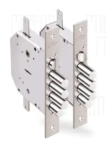 Замок Elbor (Эльбор) врезной сувальдный с задвижкой и защёлкой Гранит 1.06.42 (левый) с тягами, 5 кл. /24376/ никель