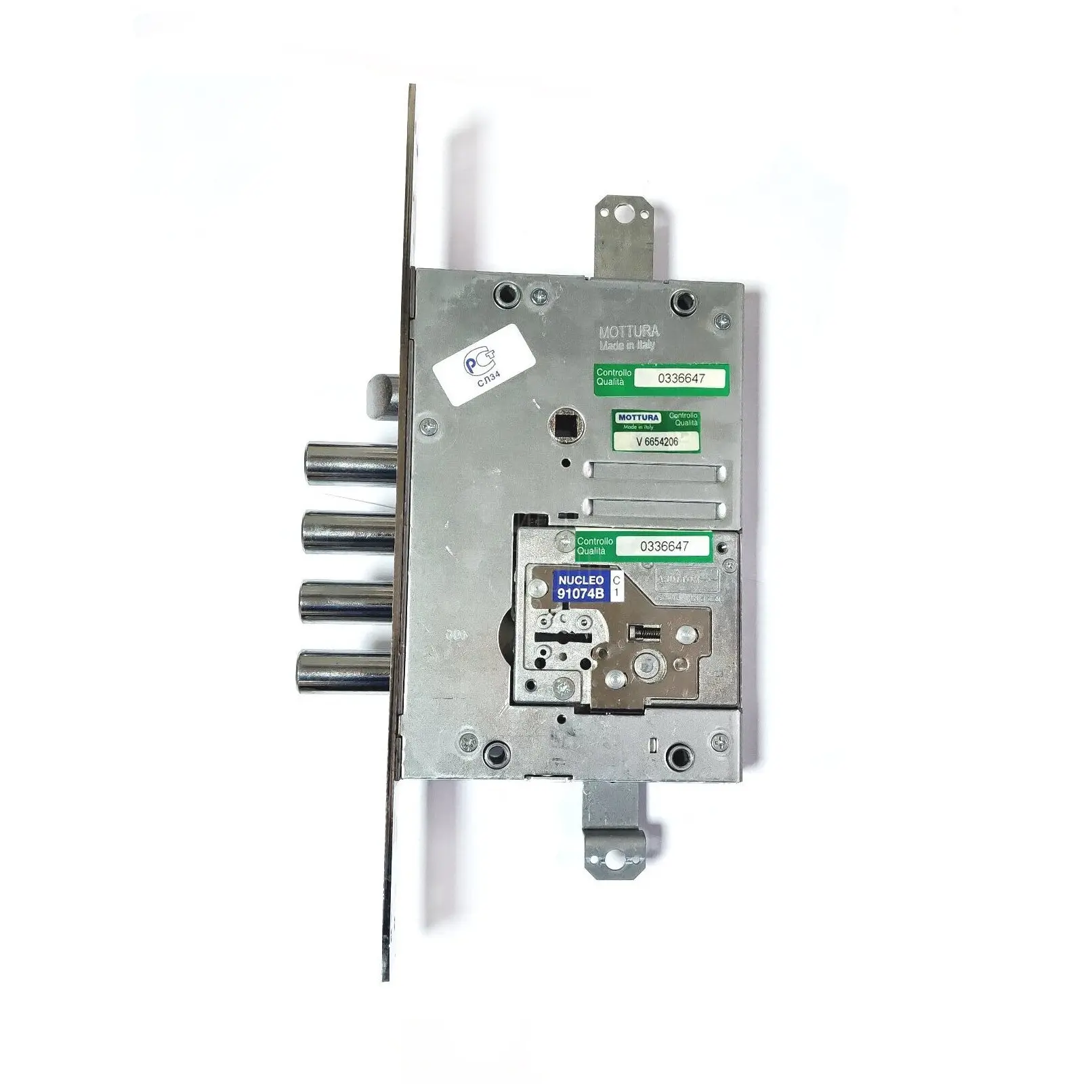 Замок Mottura (Моттура) врезной сувальдный с защёлкой 52.Y535M-D MyKey (правый), ключ 40 мм никель